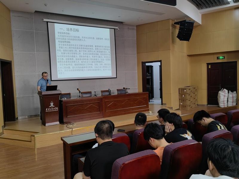 韩有民老师就培养目标、毕业要求及12项能力达成情况、专业人才培养方案、专业方向课等内容做了详细介绍;韩有民老师和黄博老师分别针对建筑工程和城市地下空间工程方向的师资条件、课程设置、核心能力培养和就业趋势等内容作了宣讲动员;黄博老师介绍了土木工程专业方向分流原则和具体流程。