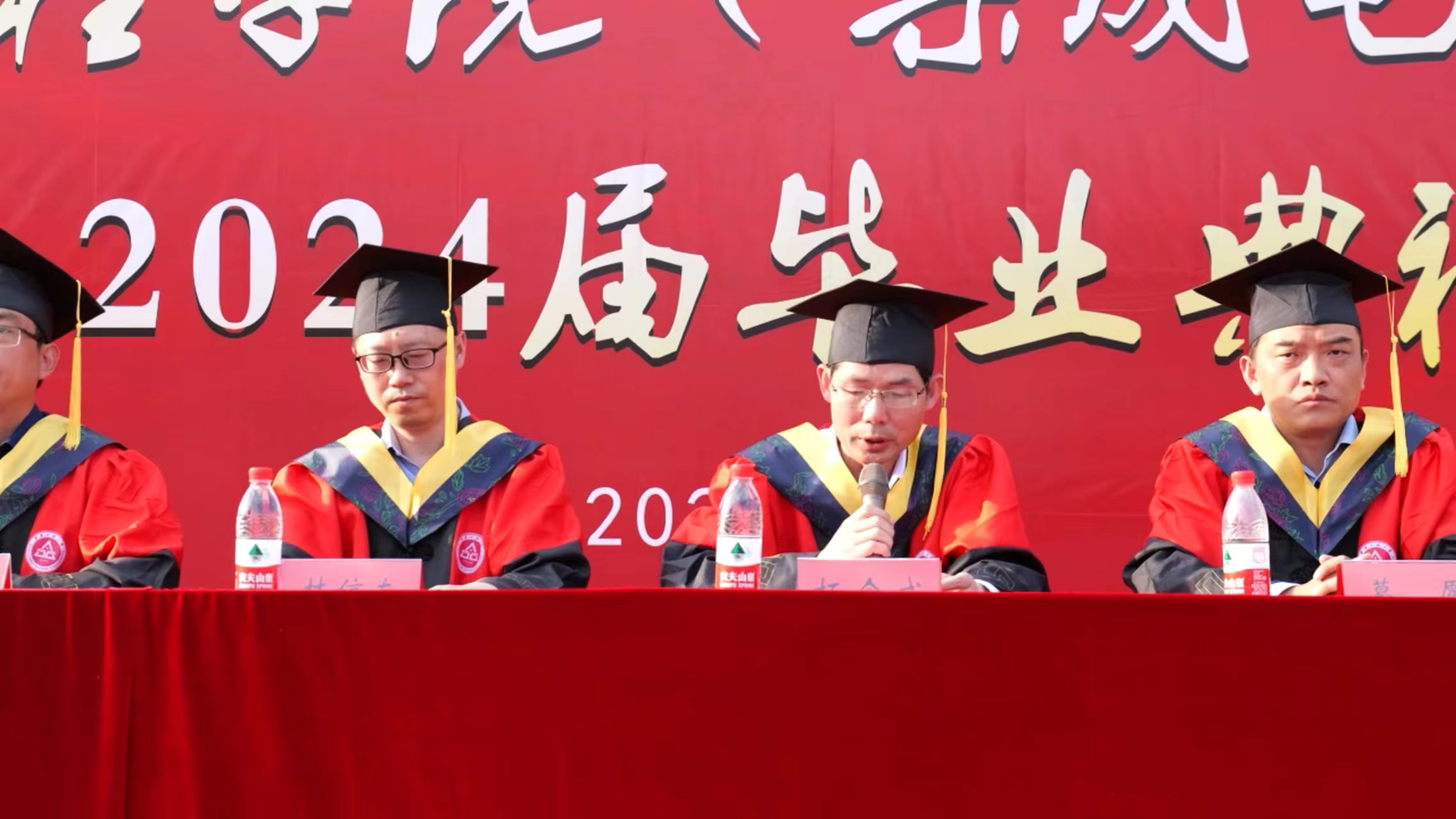 “今天,我们齐聚一堂,共同见证和庆祝我院2024届毕业生们的重要时刻。作为学院党委书记,我深感荣幸能够在这个特殊的日子里,向即将踏上新征程的同学们送上最诚挚的祝福和期望。”杨会成在讲话中带领同学们回顾了在学院经历的不平凡四年。