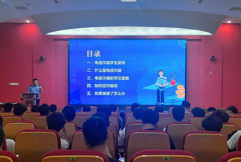 本网讯 为进一步提高校区学生防范电信诈骗、识别邪教的意识和能力,5月30日,校区管委会联合芜湖市公安局万春派出所在图文信息中心梦溪报告厅开展“反诈反邪宣讲进校园 警校联动护航青春”主题讲座。