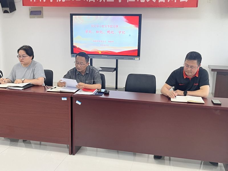 学院党总支书记杨善祥以《学纪、知纪、明纪、守纪》为师讲纪律教育专题党课。他结合中央部署要求强调了开展党纪学习教育、加强纪律建设的重要意义,简要解读了《中国共产党纪律处分条例》的主要内容,强调要以党纪学习教育为契机,全面提升学院干部师生的纪律规矩意识,不断筑牢纪律观念,坚决守住红线、守牢底线、不越高压线,全面规范自身行为,使铁的纪律成为日常习惯和自觉遵循,把遵规守纪内化为言行准则;要把纪律教育与师德师风建设相结合、与规范健全学院内部管理制度相结合,营造遵规守纪、风清气正、勇于担当、干事创业的良好发展氛围。