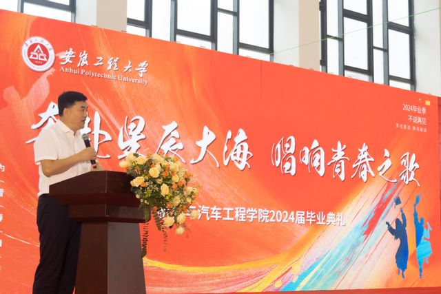 机械与汽车工程学院党委书记魏长顺代表学院向顺利完成学业的全体毕业生表示祝贺,他勉励同学们始终做心中有党的新时代好青年,笃定目标、砥砺前行,传承好“雨耕勤作 赤铸精工”的母校大学精神和“尚德敏学 唯实惟新”的校训精神;始终做身怀绝技的新时代有为青年,修炼内功,增长才干,以“功成不必在我、功成必定有我”的担当努力成为国家栋梁之才;正确对待人生旅途中的每一个困难与挫折,积极向上,宽容平和,不让父母操心、不让爱人担心、不让朋友挂心。
