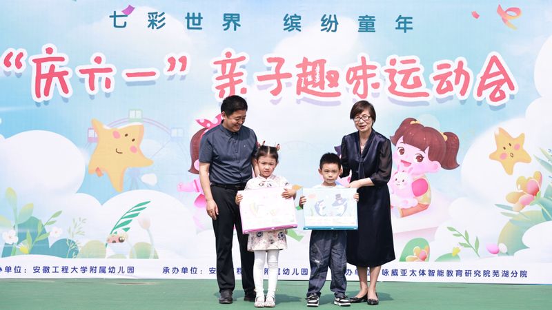 本网讯 为庆祝“六一”国际儿童节,6月1日,校附属幼儿园在第一田径场开展“七彩世界,缤纷童年”大型趣味亲子活动。校党委副书记、关工委主任苏国红出席活动,后勤保障处、校工会相关负责人,附属幼儿园师生和幼儿家长参加活动。