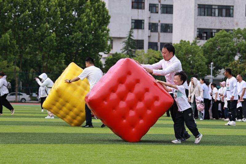 亲子游戏将现场气氛推向了高潮。在“金币箱子”“超级接力赛”“搬运小能手”“彩虹王国”等游戏活动中,孩子们和家长们团结协作、不畏艰难、努力拼搏,共同体验着运动的快乐与合作的力量。现场的笑声、欢呼声、加油声交织在一起,仿佛是一首欢快的交响乐,将整个运动场烘托得快乐而热烈。