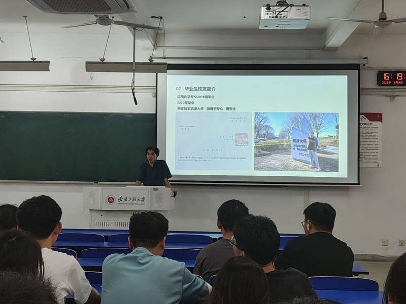 活动期间,马晨介绍了校友范福本科期间的学习经历,回顾了其跨专业考取物理学硕士研究生,实现海外留学备考拼搏的时光。范福分享了自己的求学经历,他在校期间曾就读应用化学专业,却考取了日本筑波大学的物理学专业硕士研究生,付出了努力和艰辛,实现了自己的理想。他勉励同学们要付出大量时间和精力去学习新的专业知识,弥补自己在基础知识上的不足;要承受心理以及生活上的压力,专心学习。他还分享了海外求学、实习等方面的经验和心得。强调了“终身学习”的重要性,鼓励学弟学妹们要善于利用资源,不断提升自己的综合素质;特别是有留学意向的同学更要时刻注重提升绩点;洞察理论知识与实际操作之间的差距,鼓励同学们学会主动学习和快速适应,同时也要明确自己的目标和优势。