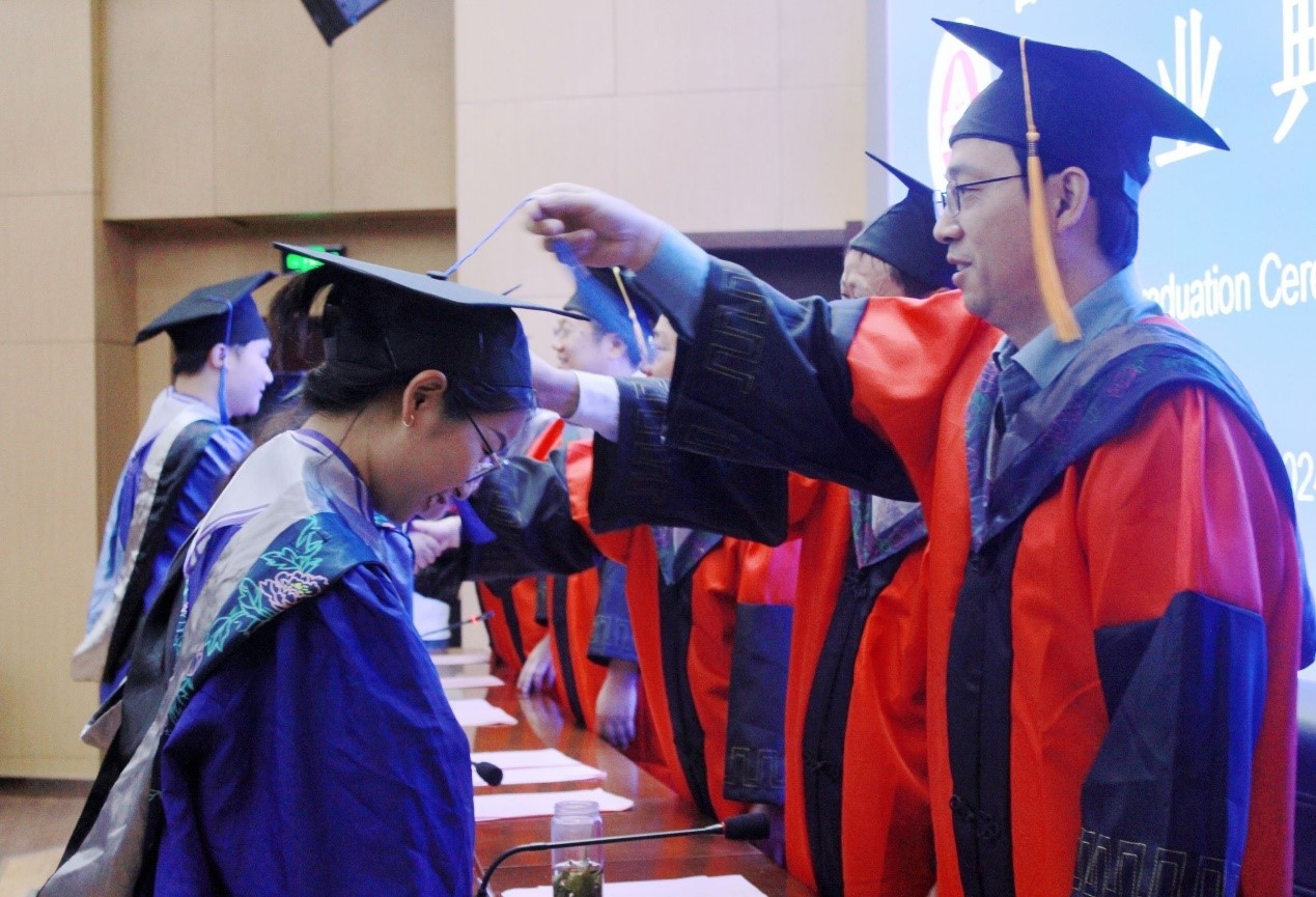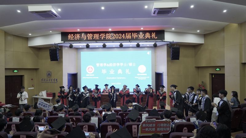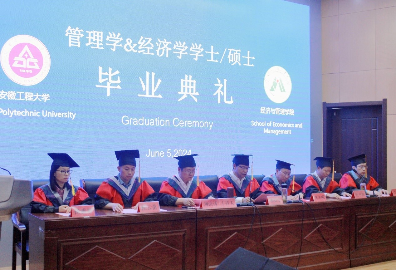 本网讯 6月5日,经济与管理学院在C座7楼报告厅为2024届毕业生隆重举行毕业典礼,学院党政班子成员、各系部主任、专业负责人、教师代表、毕业班辅导员、学生代表、留学生代表等共同参加。典礼由学院党委副书记刘海涛主持。