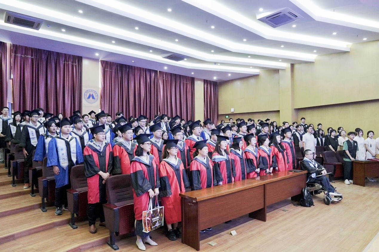 毕业典礼在庄严的国歌声中拉开序幕。