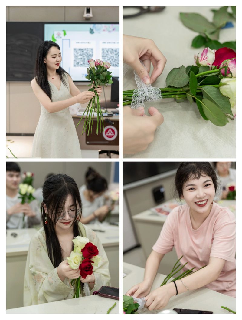 同学们积极参与了捧花制作。在宜香文化传播公司总经理、花艺师张群的指导下,同学们精心挑选花材,亲手制作出一束束精美的捧花。这个过程中,同学们不仅学会了制作捧花的技巧,更体会到了劳动的乐趣和价值。他们用自己的双手,将普通的花材组合成寓意深刻的捧花,为党的生日献上了一份特别的礼物。