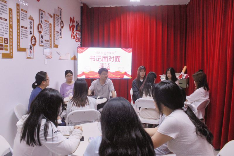 本网讯 为深入贯彻落实学校“三全六专”育人理念,进一步推动青年大学生全面发展,了解学生动态,及时解决学生现实存在的相关问题,6月21日,经济与管理学院在“管家”一站式社区工作站(女5栋102室)开展“书记面对面”座谈会,学院党委书记水心宝、副书记刘海涛,辅导员张方及各专业学生代表共同参加。