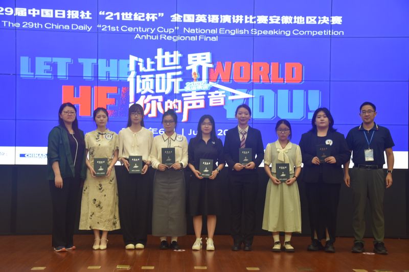 “21世纪杯”全国英语演讲比赛入选《2023全国普通高校大学生竞赛分析报告》竞赛目录,成为教育部官方认可的全国赛事之一。安徽赛区的决赛吸引了来自合肥工业大学、安徽大学、安徽师范大学、安徽理工大学、黄山学院等省内11所高校的21名选手参加。选手们在比赛中展现出了卓越的英语水平和出色的综合素养。在已备演讲环节,选手们围绕“The revival of traditional culture”这一主题,深入阐述了自己对于传统文化复兴的理解和思考,观点深刻且极具启发性。在即席演讲环节,选手们在短短20分钟准备后便登台演讲,充分展现了他们敏捷的思维和良好的应变能力。在现场问答环节,面对评委们根据已备演讲内容和即席演讲内容提出的问题,参赛选手们沉着应对,凭借扎实的知识储备和出色的语言组织能力给出精彩回答。经过激烈角逐,产生了一二三等奖,我校英语222班的王超和英语213班的汪璐2名同学代表学校参赛,分别获得了二等奖和三等奖的好成绩。