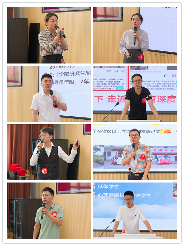 来自15个学院的20名辅导员,立足辅导员工作九大职责,展示了他们在学生思想政治引领、学业帮扶、心理健康教育、就业指导等方面的育人成果,分享了作为一名辅导员的感悟。经过激烈角逐,黄蓉静等5名辅导员获得“最美辅导员”荣誉称号,赵恒梅等5名辅导员获得“辅导员年度人物”荣誉称号,张亚暾等5名辅导员获得“辅导员年度人物提名”荣誉称号。大会现场还对近一年来在思想政治教育和价值引领、就业创业、安全教育、“一站式”社区建设等领域表现突出的辅导员进行了表彰。