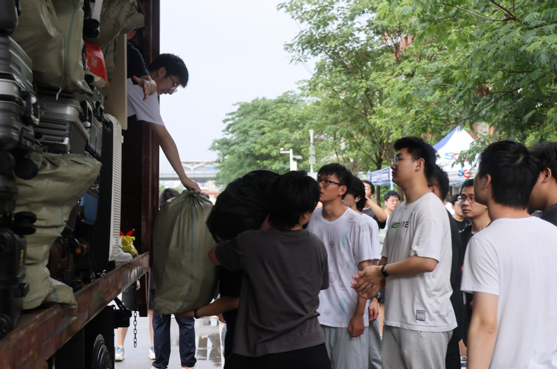本次搬迁工作遭遇了本市入夏以来的一次强降水过程,管委会及校本部相关部门为此开展了大量工作以协同搬迁服务中标单位合理确定客货运班次、部署云梯车等设备,并确保搬迁各集结点配备足量雨棚及适宜场地。在搬迁过程中,管委会及各学院均出动了志愿者协助行李转运及雨棚搭建。校区物业部门也投入了大量人力,尽力消除降水影响,保障搬迁工作快速、高效完成。在得知有学生出现被褥淋湿情况后,管委会迅速协调校区可用资源,为学生安排被褥,充分贯彻了“以生为本”的服务理念。