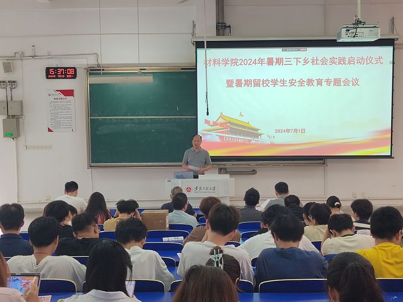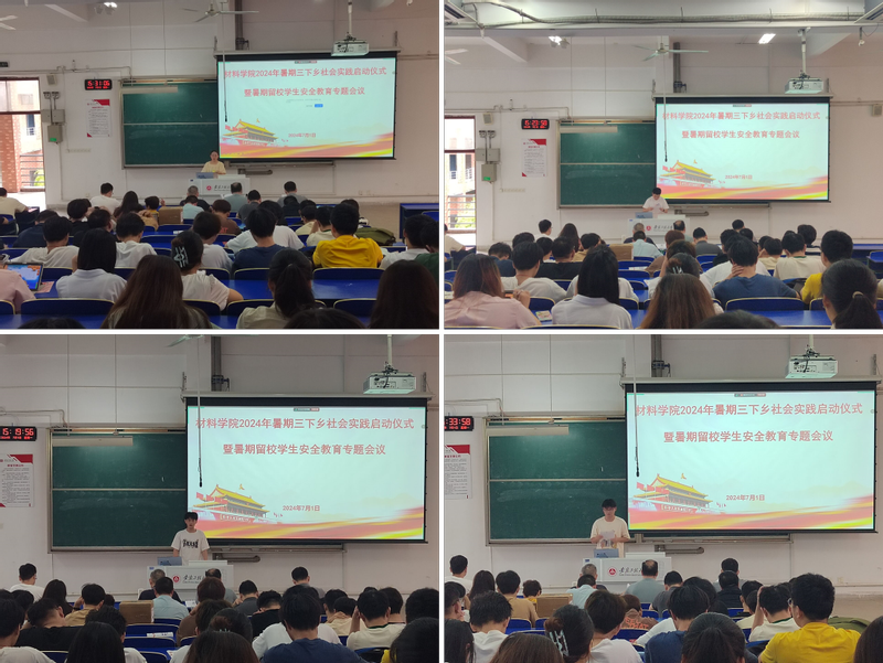 本网讯 为积极引导青年学生在社会实践中了解社会,提升服务人民群众的能力,展现新时代中国青年的风貌和担当,进一步做好2024年暑期留校学生管理服务工作,强化暑期留校学生的安全防范意识并营造良好的学习生活氛围,7月1日,材料科学与工程学院在6J214召开2024年暑期“三下乡”社会实践启动仪式暨暑期留校学生安全教育专题会议。校团委副书记周海林、学院党委副书记方玖胜出席会议,指导老师、全体辅导员以及暑期留校同学采用“线上+线下”的方式参加会议,活动由院团委负责人田园主持。