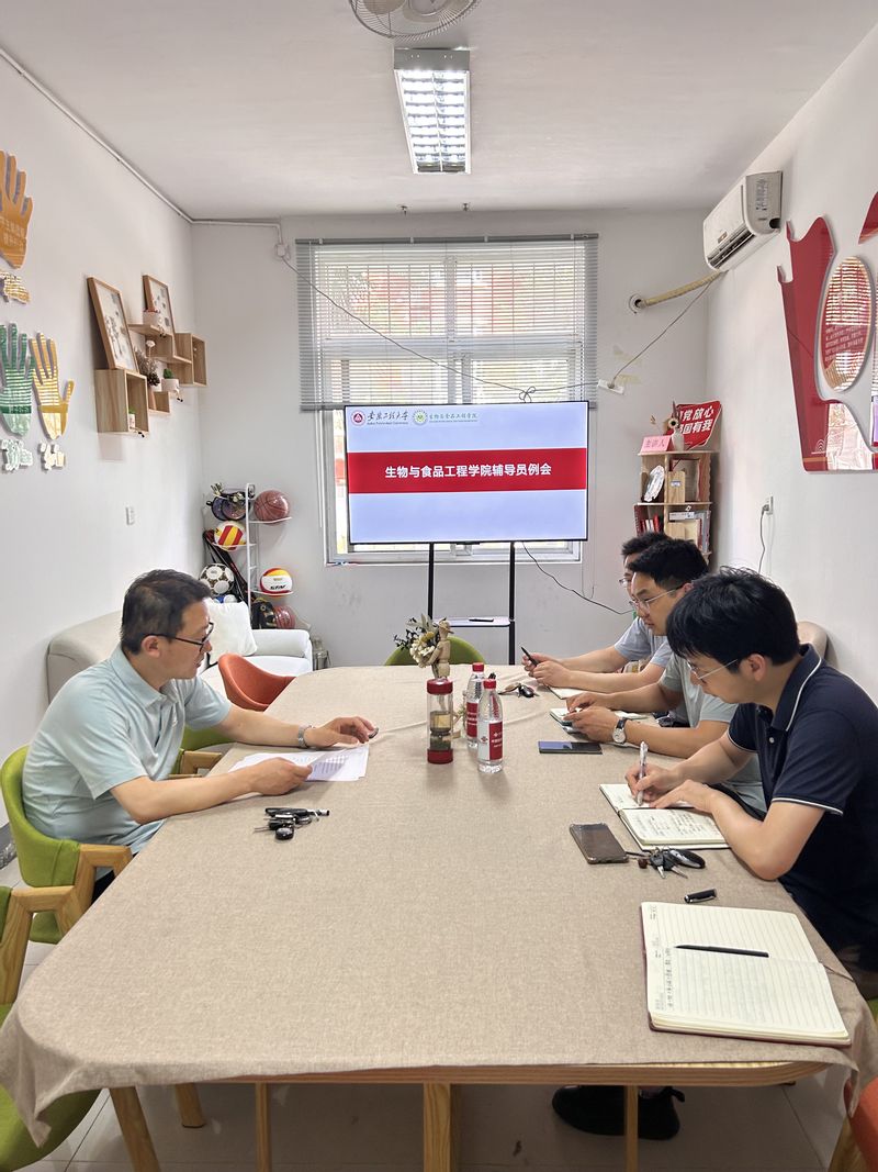 本网讯 7月3日,生物与食品工程学院在男14栋“生师有约”学生和谐社区工作站召开辅导员例会,部署和安排暑期学生工作。学院党委副书记王彦青和全体辅导员参加会议。