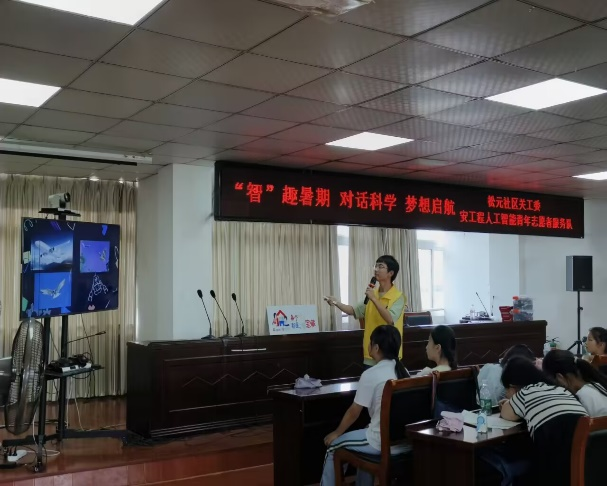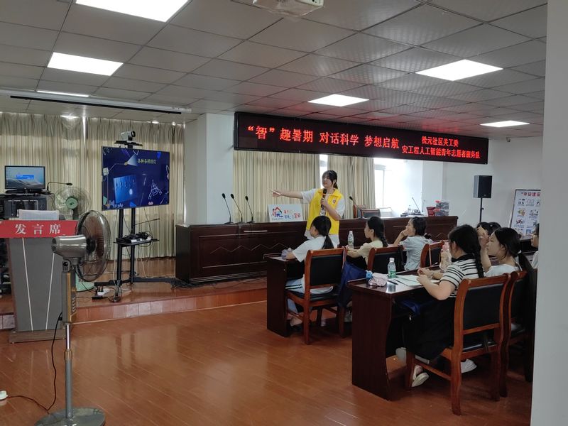 在当天的科普小课堂上,团队成员通过生动的PPT展示,将复杂的人工智能概念变得通俗易懂。他们深入浅出地讲解了AI的发展历程、技术原理以及在实际生活中的应用,让小朋友们仿佛置身于科技的海洋中。以“台灯台灯,有耳朵?”小课堂介绍了AI智能语音识别的声控灯,小朋友们纷纷瞪大了眼睛,好奇地听着声音如何控制灯光的开关。而仿生机器人的展示更是将活动推向了高潮,小朋友们被这些能够模仿生物行为的高科技产品深深吸引,纷纷表示要努力学习科学知识,将来也能创造出这样的神奇产品。