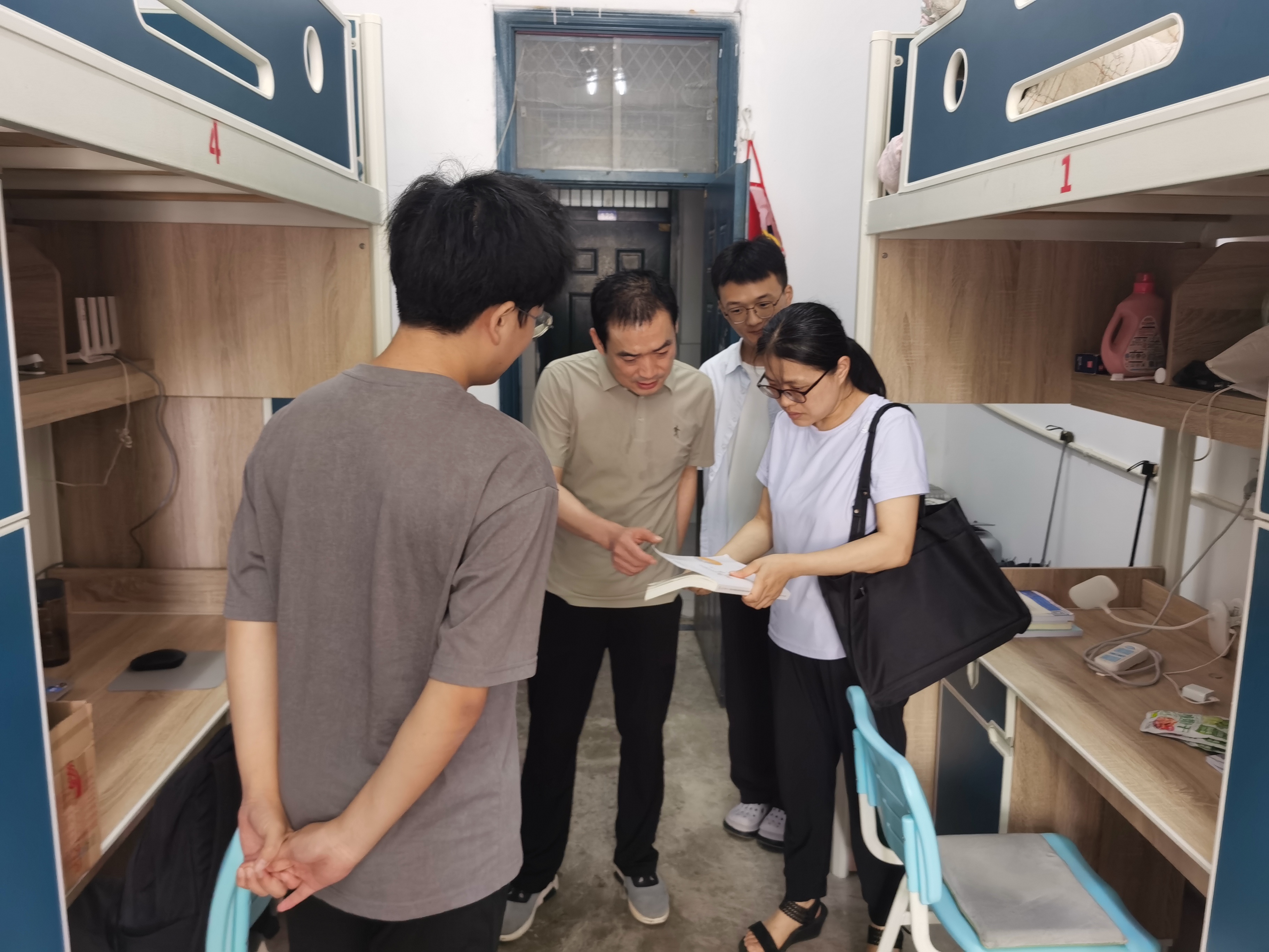 在学生宿舍,董金权与同学们亲切交谈,详细询问了他们准备报考的学校、专业和学习生活安排,叮嘱同学们要注意防暑降温、合理安排作息时间、保持良好的学习生活习惯。