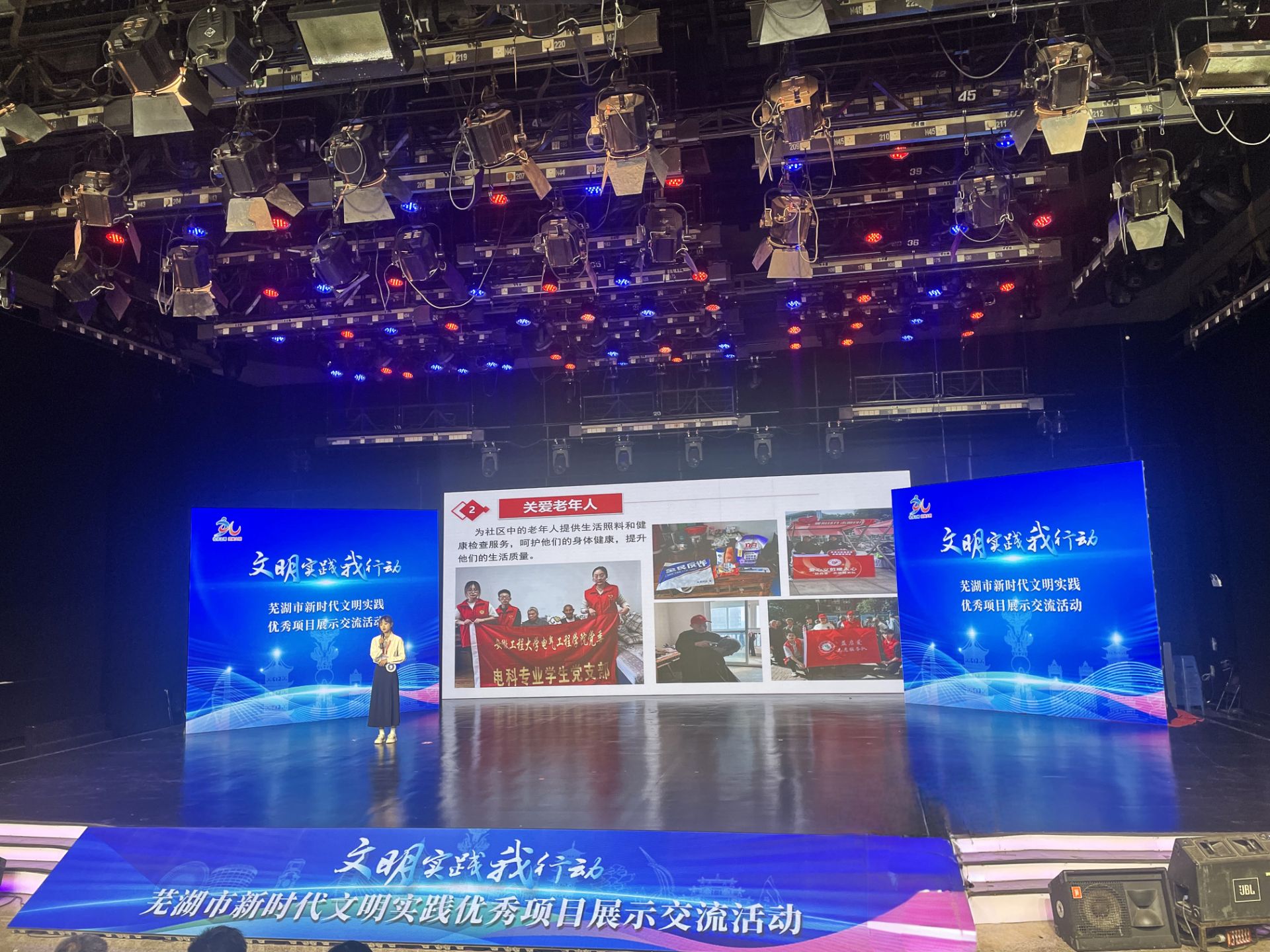 本网讯 7月31日,由中共芜湖市委宣传部、中共芜湖市委社会工作部、市直机关工委、芜湖市民政局、共青团芜湖市委员会联合举办的芜湖市新时代文明实践优秀项目展示交流活动,在市传媒中心演播大厅圆满举行。经过全市30支项目的激烈角逐,电气工程学院(集成电路学院)电科专业党支部和经开区万春街道木龙社区党总支共建的“益启爱”文明实践项目荣获三等奖。