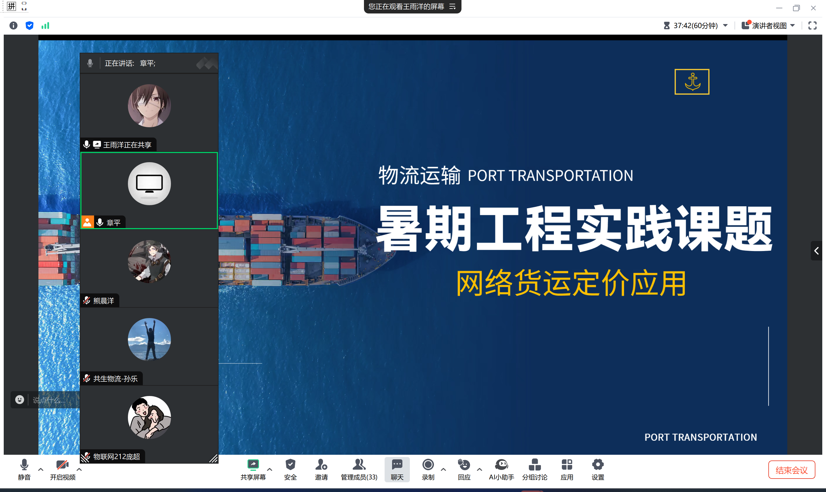 研究生王雨洋代表校企合作团队,报告了团队在过去一年在该课题上的研究过程和成果。报告不仅展示了团队的努力和成就,也对基于大模型/机器学习的网络货运价格预测暑期工程实践课题进行了详细的解读。
