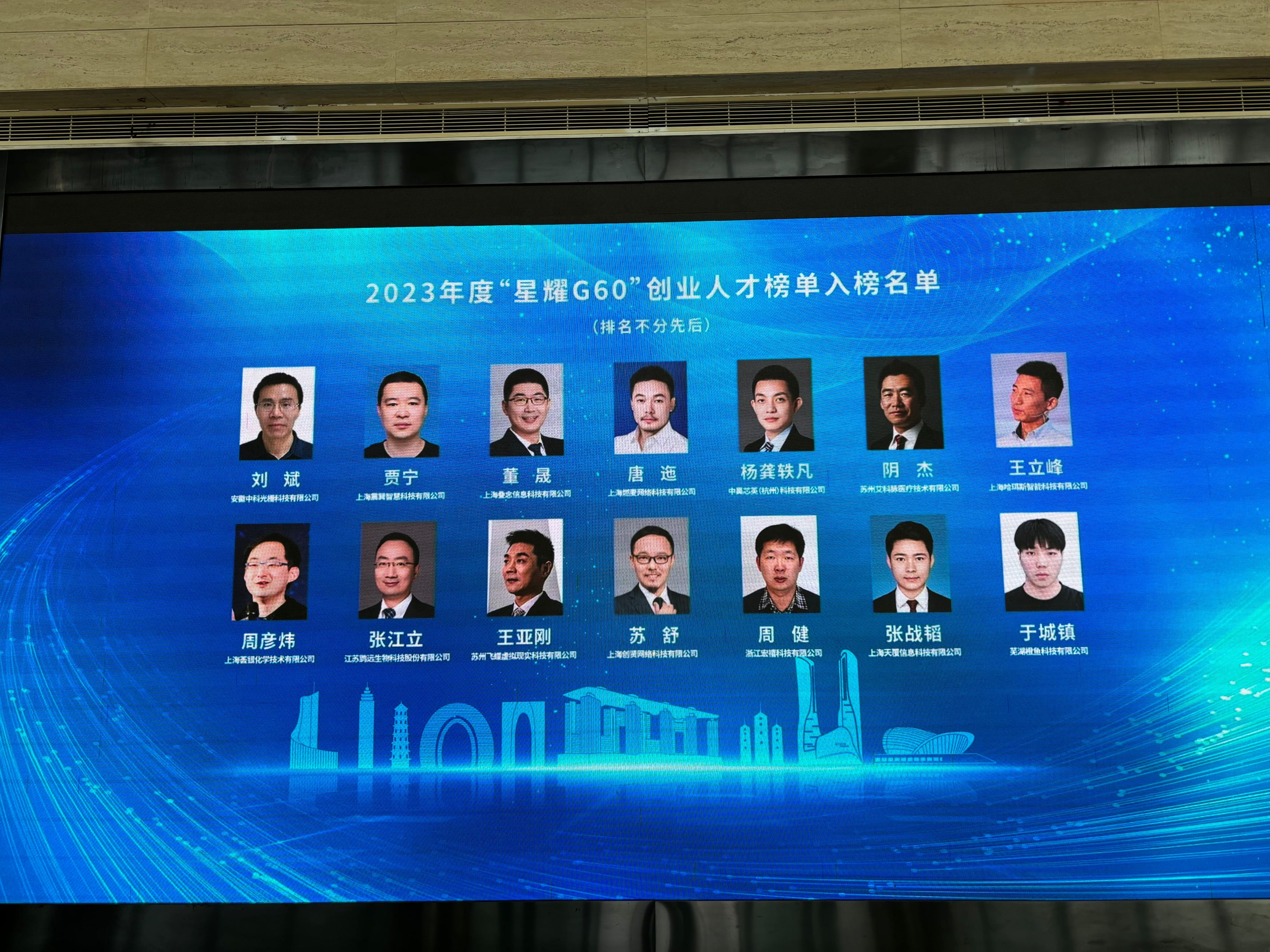 本网讯 8月22日,由中国科学技术协会指导,中国科协科学技术传播中心、上海市科学技术协会、上海市松江区人民政府联合主办的2023年度长三角G60科创走廊青年创业榜单U30暨“星耀G60”创业人才榜单评选活动如期举办。60名创新创业人才脱颖而出成功入选,计算机与信息学院于城镇同学作为芜湖橙鱼科技有限公司执行董事入选“星耀G60”创业人才榜单。