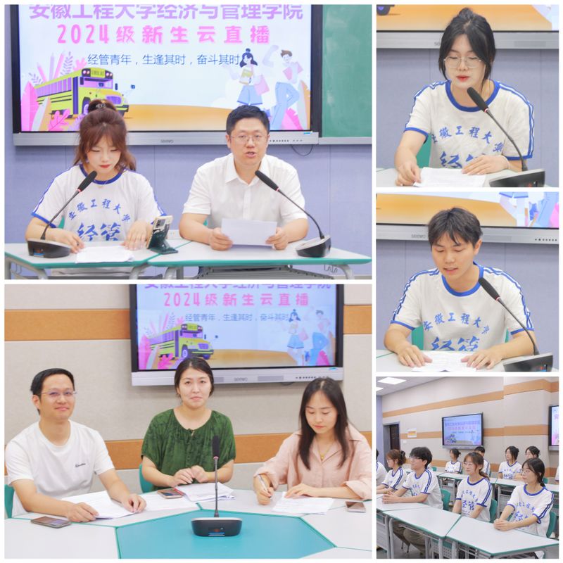 本网讯 九月的风,是初秋的信差,又是一年开学季,为迎接2024级新生的到来,帮助新生更好更快地熟悉报道流程、了解大学生活和适应大学环境,经济与管理学院于9月4日在4教101室开展“迎新生2024级新生云直播活动”。院党委副书记刘海涛、2024级新生辅导员赵恒梅、滕伟迪、吴兆克,全体新生学长导员、学生代表等30余人共同参加。直播由物流221班程畅主持。