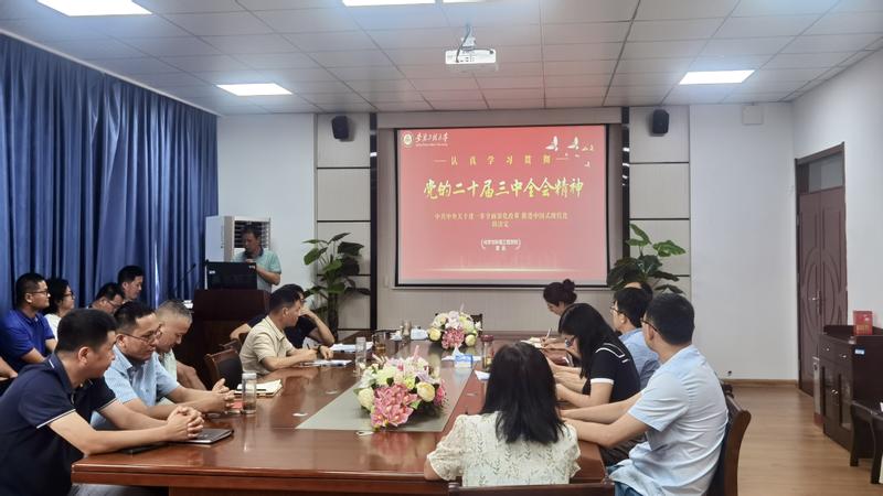 会上,全体教职工还集中学习了《中国共产党第二十届中央委员会第三次全体会议公报》、《中共中央关于进一步全面深化改革、推进中国式现代化的决定》等文件,观看了2024年高校党组织示范微党课第一讲《坚持教育科技人才“三位一体”,奋力谱写中国式现代化宏伟篇章》和纪录片《大教育家》等内容。章兵开展了党的二十届三中全会精神专题宣讲。
