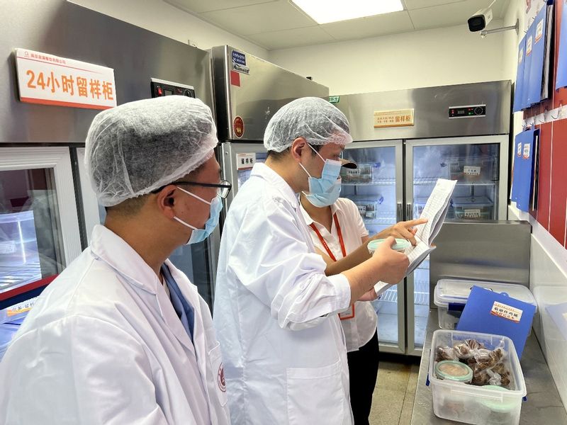 工作人员深入食堂备餐间、操作间和售卖间,重点围绕场所环境、原材料贮存、人员管理、加工操作、清洗消毒、食品添加剂管理、食品留样、“日管控、周排查、月调度”工作机制落实情况、防鼠防蝇设施设备配备等方面进行了全面细致的检查。城东市场监管所对我校依托成本监控系统从源头上抓安全的做法表示认可,对学校高度重视食品安全工作、时刻展示“刀刃向内”的管理态度给予肯定,希望持续保持斗争精神,强化食品安全监管,及时发现并消除食品安全风险隐患,守牢校园食品安全底线。