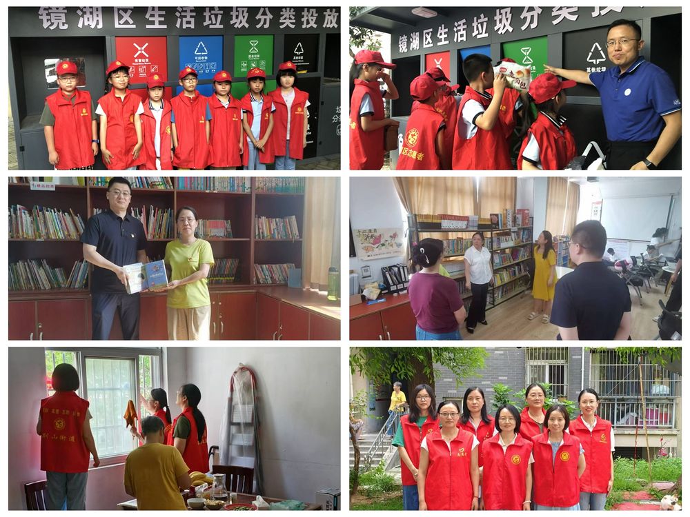 支部副书记、图书馆副馆长王中江在镜湖区红梅新村社区为芜湖师范附小的小学生开展垃圾分类知识培训,通过现场讲解、演示和协助,帮助孩子们树立环保意识,掌握垃圾分类的正确方法。支部书记、图书馆馆长李琛和张义、张彤彤、倪蓓蓓三位科室负责人前往弋江区中南街道滨江社区公益书屋,进行了图书捐赠,并就书屋的图书管理和借阅工作进行了专业指导。此外,支部委员倪珏与6名党员同志携手前往镜湖区棠梅社区,为社区老人提供上门打扫室内卫生服务,让老人们感受到了来自社会的温暖和关怀。支部党员苏娟则利用自身在图书馆工作的专业技能,为万春街道代垛社区规划整理了社区书屋,使书屋的藏书更加有序,阅读环境更加温馨。同时,支部委员李丽、刘克涛和党员孙梅、胡皓娟等同志也分别在所在社区开展了公共卫生清理和环境整治工作,他们手持扫帚、拖布等工具,对社区内的道路、绿化带、公共设施等进行清洁,改善了社区的环境卫生状况,提升了居民的居住体验。