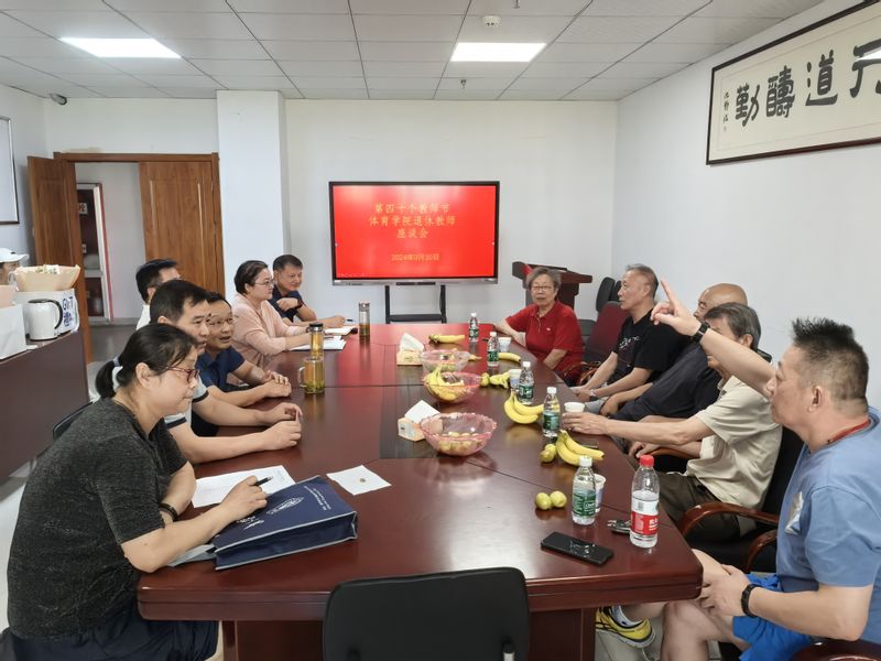 9月10日上午,学院邀请疏炉生、乔泽静、熊朴俊、唐争鸣、沈静波等5位退休老领导、老教师参加座谈交流活动。学院领导班子成员、分工会负责人及部分师生代表参加座谈。学院领导班子向老领导老教师表达了节日问候,介绍了学院近年来的发展成就,对老一辈的辛勤付出和卓越贡献表示由衷的感谢和敬意。老领导老教师对学院发展成就感到欣慰,回忆他们在体育学院工作和奋斗的艰苦经历和点滴记忆,对学院未来发展充满期许和祝福。学生代表为老领导老教师送上鲜花和纪念品表达节日祝福。学院领导班子带着鲜花和礼品走访了部分未能参加座谈的教师,为他们送上学院师生真挚的节日祝福。