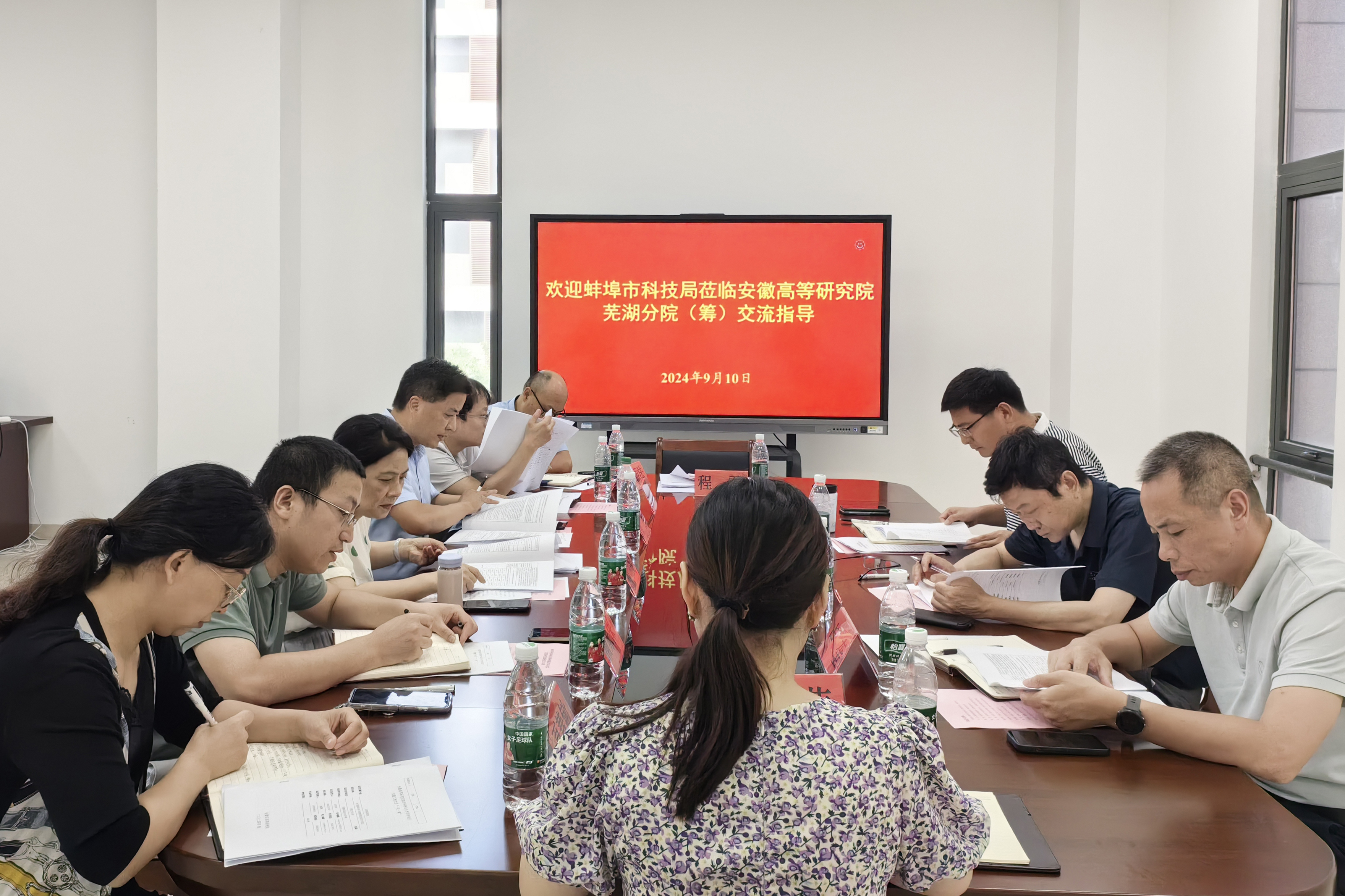 会上,与会人员就高等研究院与高校的合作模式、学生管理与服务、项目遴选与筹划等方面工作进行了深入的交流。会后周伟、潘家保陪同蚌埠市科技局一行人员参观芜湖分院工作场地和研究生公寓。