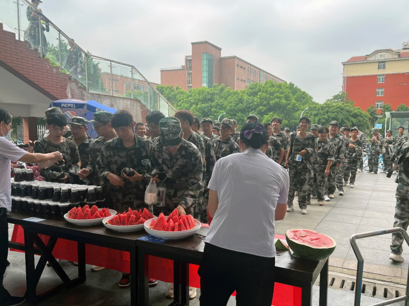 军训送清凉,西瓜沁心房。东区食堂为正在军训的新生准备了免费的西瓜和酸梅汤,让同学们在紧张的训练期间感受到学校的关心和关怀。