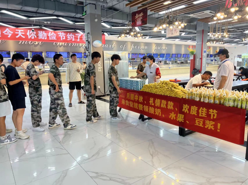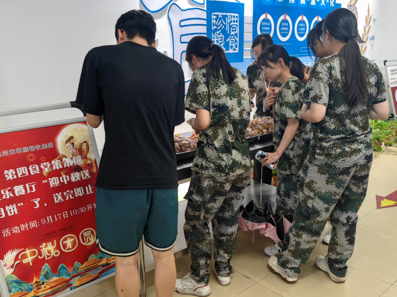 月满人团圆,美食共此时。节日当天,学校各食堂精心准备,增加菜肴品类,丰富学生选择,二、三、四食堂为所有前来就餐的同学们发放免费的月饼3000余枚,十余种口味的月饼供同学们挑选,领到月饼的同学脸上充满幸福与笑容。东区食堂准备了酸奶、水果和饮品,免费发放给前来就餐的同学,让不能回家过节的孩子也能感受家的温暖。