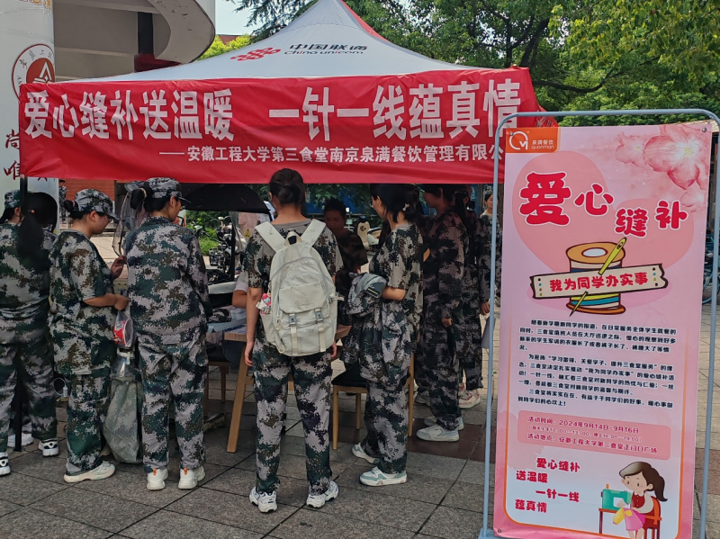 一丝一缕穿梭爱,一针一线总关情。军训期间,第三食堂开展了为期三天的爱心缝补活动,免费为同学们修补衣物、改制长短。新生同学表示,爱心缝补活动非常暖心,越是微不足道的小事,越是能感受到真诚的心。