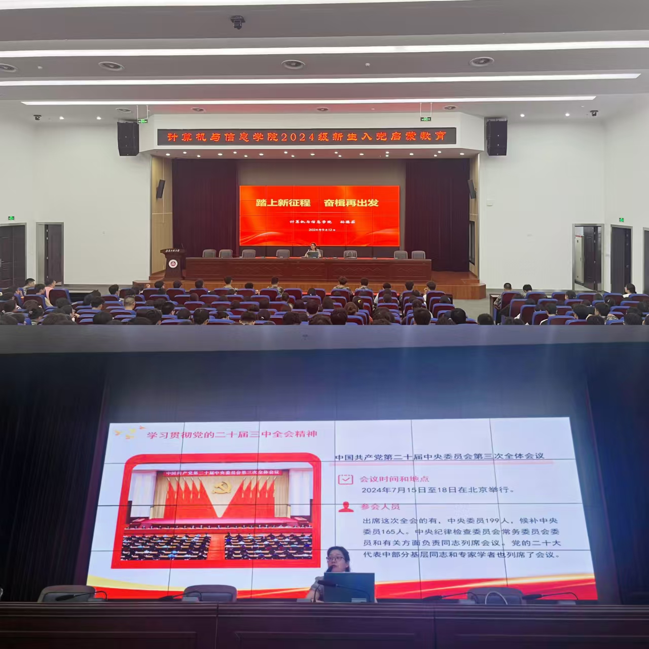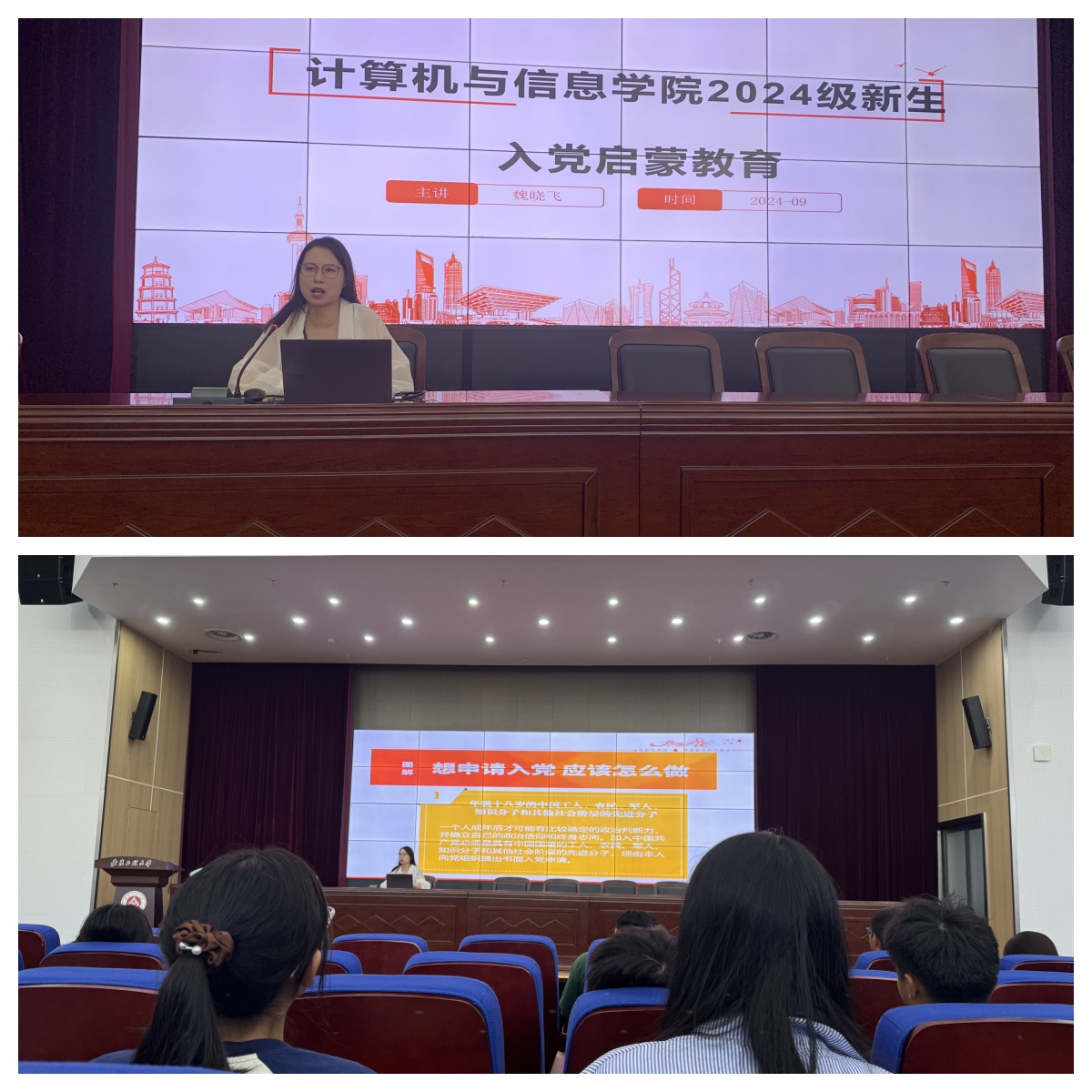 本网讯 为了激发大学生政治热情,深化青年学生理想信念教育,号召新生积极向党组织靠拢,9月中旬以来,计算机与信息学院开展2024级新生入党启蒙教育活动,在新生成长的拔节孕穗期坚持“早启蒙、早播种、早教育、早引导”,帮助青年学子扣好成长的第一粒扣子。学院党委书记李卫东、党委副书记孙德茹、学生党支部书记等先后给学院2024级660余名新生开展紧跟时事、内容丰富、生动鲜活的入党“第一课”。