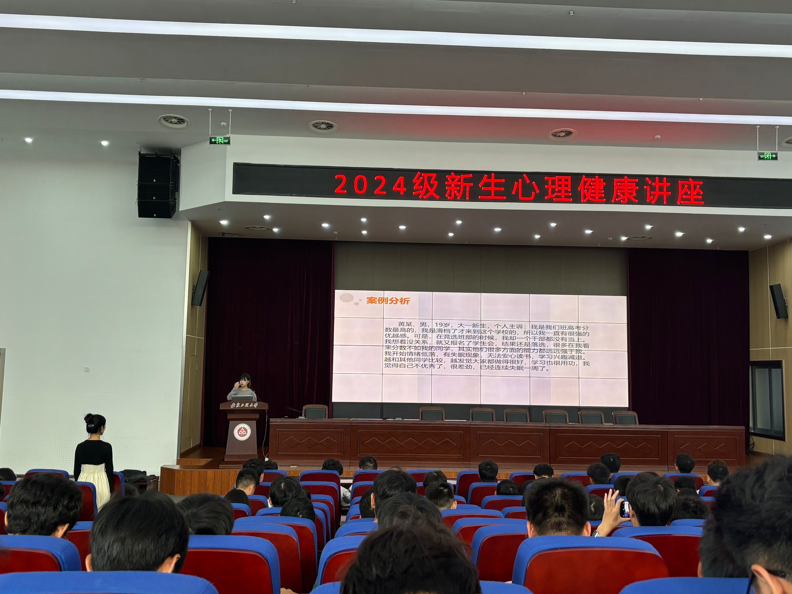 3位老师巧妙设计反向运动互动环节,点燃了现场氛围,生动诠释了人类行为受指令驱动的原理,并敏锐地指出了当前大学生面临的心理现状。老师们以实际案例为镜,从大学生活环境适应、学业压力应对、人际交往技巧三大方面,深入浅出地引导新生认识和理解大学生中普遍存在的心理问题。针对不同类型的心理状况,提供了具体可行的应对策略,同时强调了学校对学生心理健康的高度重视,介绍了学校提供的免费线上+线下心理咨询服务,以及丰富多彩的心理健康教育主题活动,预告了未来将持续为学生提供更加全面、贴心的心理健康服务。