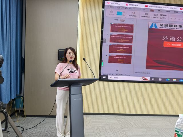 本网讯 9月21日,由芜湖市翻译协会、外国语学院联合主办的“外语公益大讲堂口译沙龙活动”于外国语学院209会议室和腾讯会议同时线上线下开展,芜湖翻译协会会长刘进及其他主要领导、外国语学院院长(主持工作)唐雪梅教授、科研副院长韩利敏教授、学院教师代表及全体MTI研究生现场出席了此次大讲堂,同时还有来自芜湖市数百名师生、口译爱好者参加了此次活动。活动由韩利敏主持。