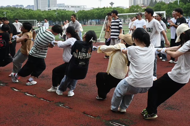 本网讯 为深入落实“三全六专”育人实践,引导学生走出宿舍、走向操场,让学生“壮起来”、“和起来”,9月25日,数理与金融学院在第二田径场举办新生拔河比赛,学院党委副书记何志恒、24级辅导员和九个新生班级学生参加。