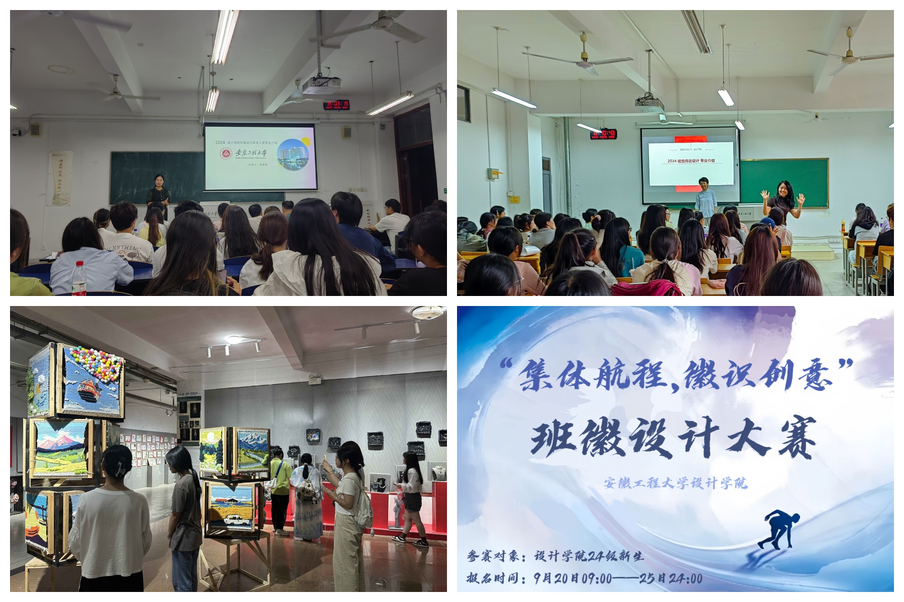 踏入“蓝色”的知识殿堂,设计学院为新生们打造了一场场学术盛宴。通过举办师生交流会、专业介绍、专业讲座、课程展览及优秀学长学姐经验分享会等丰富活动,引领新生遨游于专业知识的浩瀚星空,明确学业航向。此外,学院还启动了创意无限的新生班徽设计大赛,鼓励新生发挥想象力,将创意融入设计之中,激发他们对专业的热爱与追求,勇于攀登学术高峰。