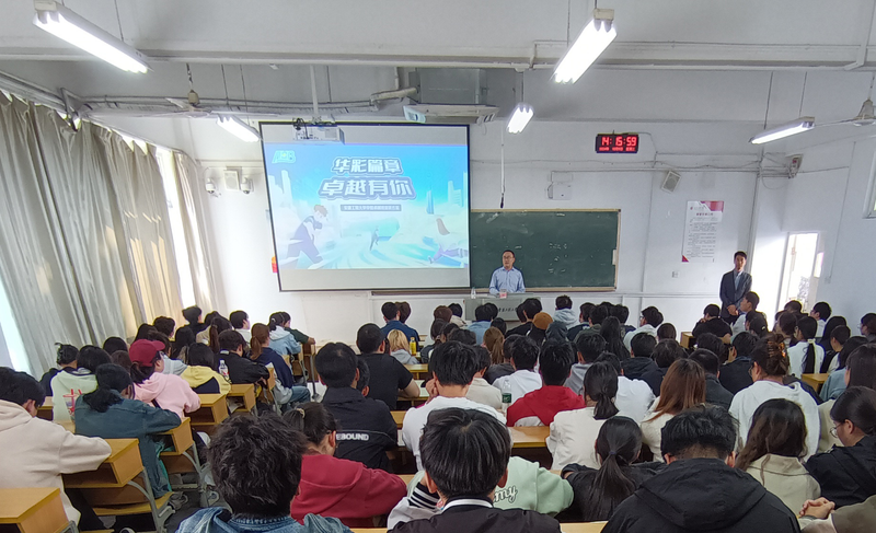 本网讯 10月9日,安徽工程大学-安徽华恒生物科技股份有限公司校企合作卓越班宣讲会在4教110教室举行。安徽华恒生物科技股份有限公司人力资源总监邢庆、人力资源高级经理徐明明应邀出席宣讲会,生物与食品工程学院副院长李艳宾、生物制药系主任、生物工程和生物制药两个专业2022级本科生参加会议。会议由李艳宾主持。