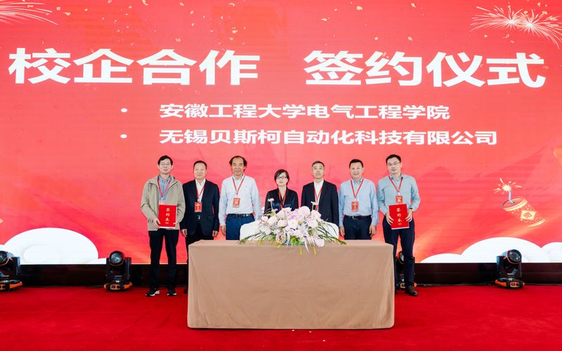 电气工程学院、化学与环境工程学院、计算机与信息学院分别与无锡贝斯柯自动化科技有限公司、无锡乐力彩纺织化工材料有限公司、无锡魔帝卡新能源科技有限公司签订校企合作协议。