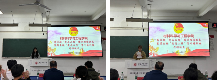 本网讯 10月22日,材料科学与工程学院第四期“青马工程”骨干培训班结业式暨第五期“青马工程”骨干培训班开班式在6教212顺利举办。学院党委副书记方玖胜、学院团委教师兼职副书记鲁力出席活动。第四期青马班优秀学员、第五期青马班全体学员参加活动。开班仪式由学院团委负责人田园主持。