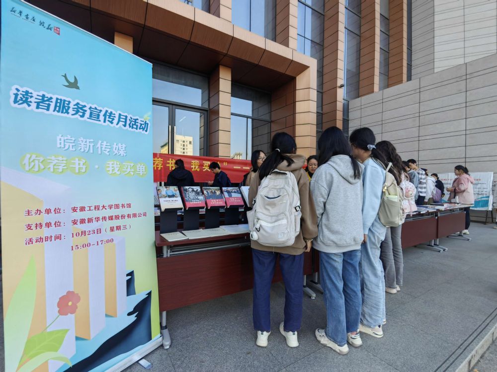 本网讯 为满足师生个性化、多元化阅读需求,营造浓厚的校园阅读氛围,促进书香校园建设,10月23日,图书馆联合安徽新华传媒股份有限公司开展了“你荐书·我买单”的读者现场荐购活动。