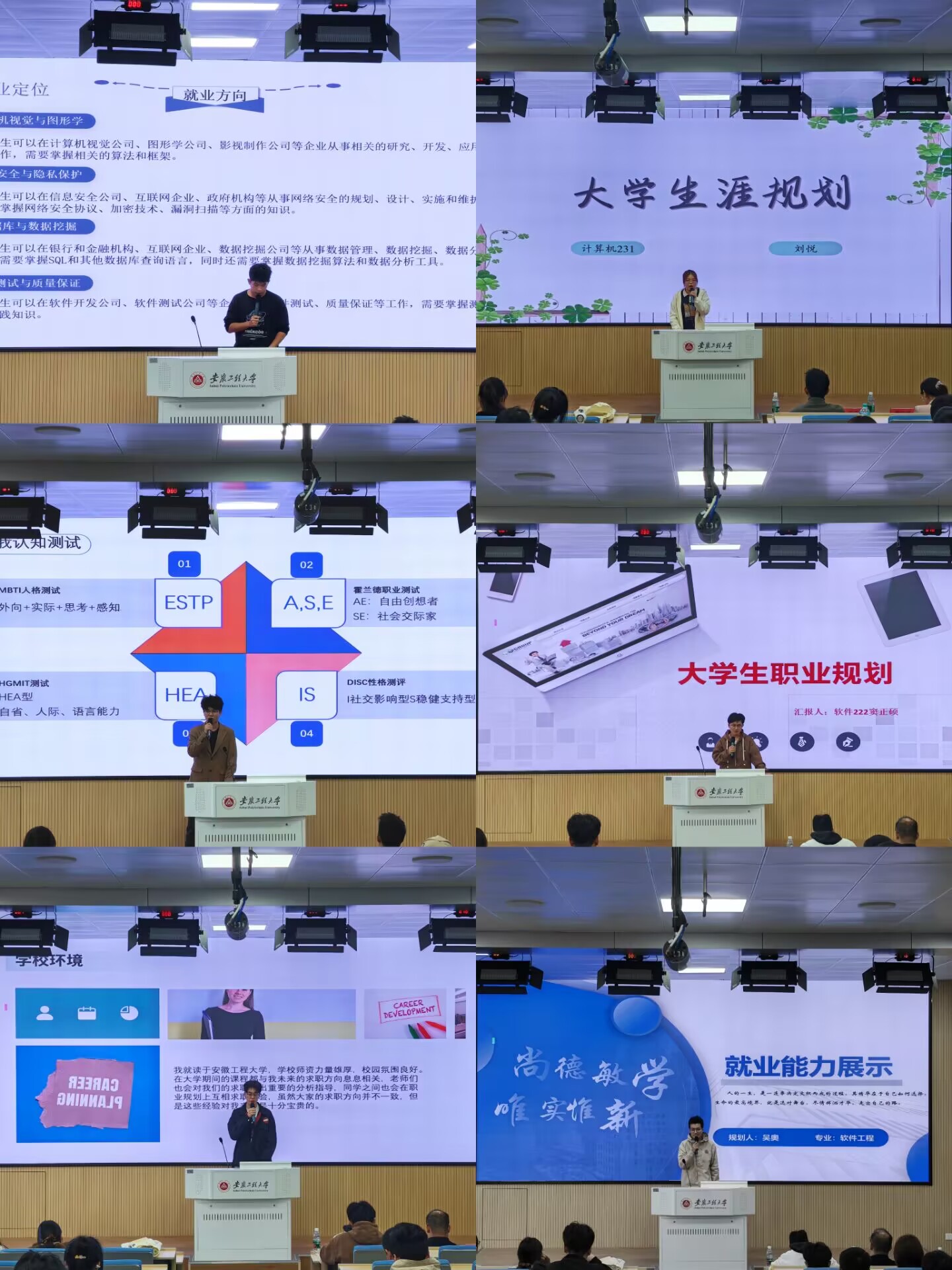 计算机与信息学院将通过一对一辅导,帮助学生修改参赛作品,充分运用学院资源优化学生整体展示,进一步提高校赛选手参赛水平。计算机与信息学院高度重视学生职业生涯规划大赛,通过举办和组织学生参加就业育人实践活动实现“以赛促学”、“以赛促就”,从学院到班级,从导师到辅导员,从规划到发展,从静态到动态,全方位指导学生开展学习实习实践,做好生涯探索和求职就业准备。教育引导学生坚定理想信念,设立合理目标,将当前任务和长远学习、大学生涯、职业生涯发展规划相结合,成长为德智体美劳全面发展的时代新人。