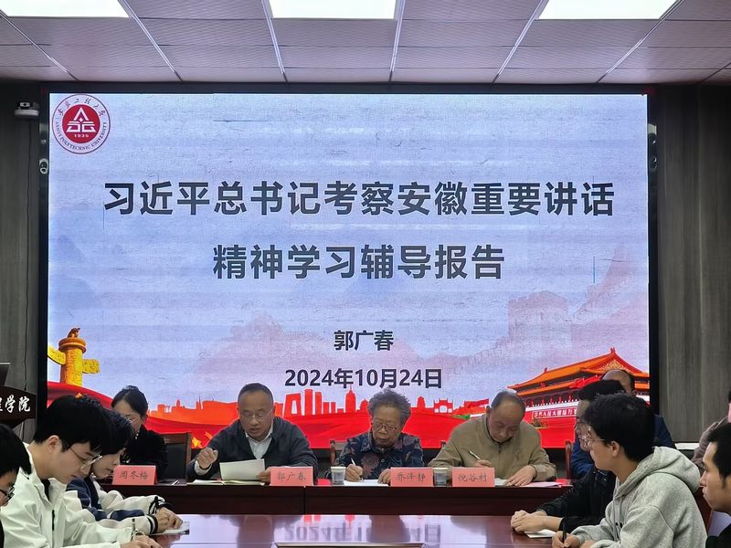 本网讯 10月24日,材料科学与工程学院第九期发展对象、第九期入党积极分子培训班开班式在B216会议室举行。培训班班主任、全体学员参加开班式。院党委书记、分党校校长郭广春出席开班式并作开班第一课。院党委副书记、分党校副校长方玖胜主持开班式。校党校督导组成员倪谷村、乔泽静全程参与督导,并与大家一起学习习近平总书记考察安徽重要讲话精神。