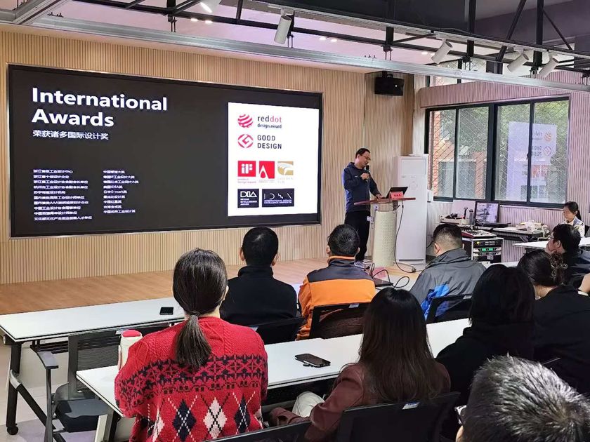 活动第二环节,杭州源骏设计执行合伙人马汉做了题为“设计师的可能角色与应具备的基本素养”的学术讲座。他从设计实践角度,分享了企业项目案例,深入讲解产品创新设计过程中设计师视角和产品设计经理视角的区别与联系,并对设计学生未来可能成为的各种职场角色做了介绍。他结合自己的设计实践和企业对设计师素养要求提出,设计是多次发散收敛、再发散再收敛的“筛选”过程,作为设计学生,应该对自己的职业具有强烈的热爱之心,对周围的事物具有好奇心,能关注人、科技、企业、市场、美学、技术、时尚等方方面面,具有跨界思考能力、持续创新和表达能力。