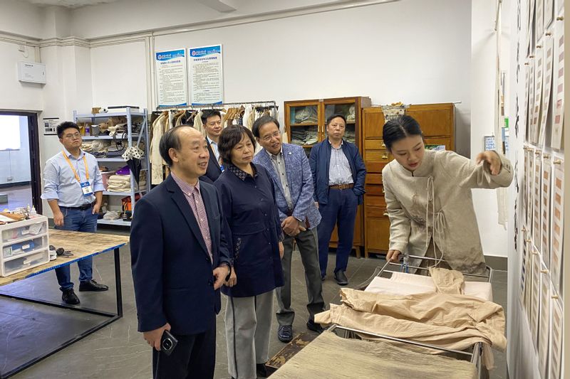 会前,孙以泽一行参观了工程训练中心膜材料中试基地、纺织服装学院展厅和实验室。