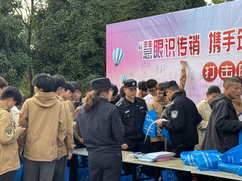 本网讯 为进一步提高在校大学生反诈防传销意识,全力保护学生财产安全,有效预防和减少校园传销案件的发生。11月1日,官陡街道打击传销专班、鸠江区公安分局经侦大队、神东社区会同保卫处、学生处在“一站式”学生社区总站为我校学生开展了一场别开生面的防范传销进校园宣传教育活动,全力护航大学生健康成长。