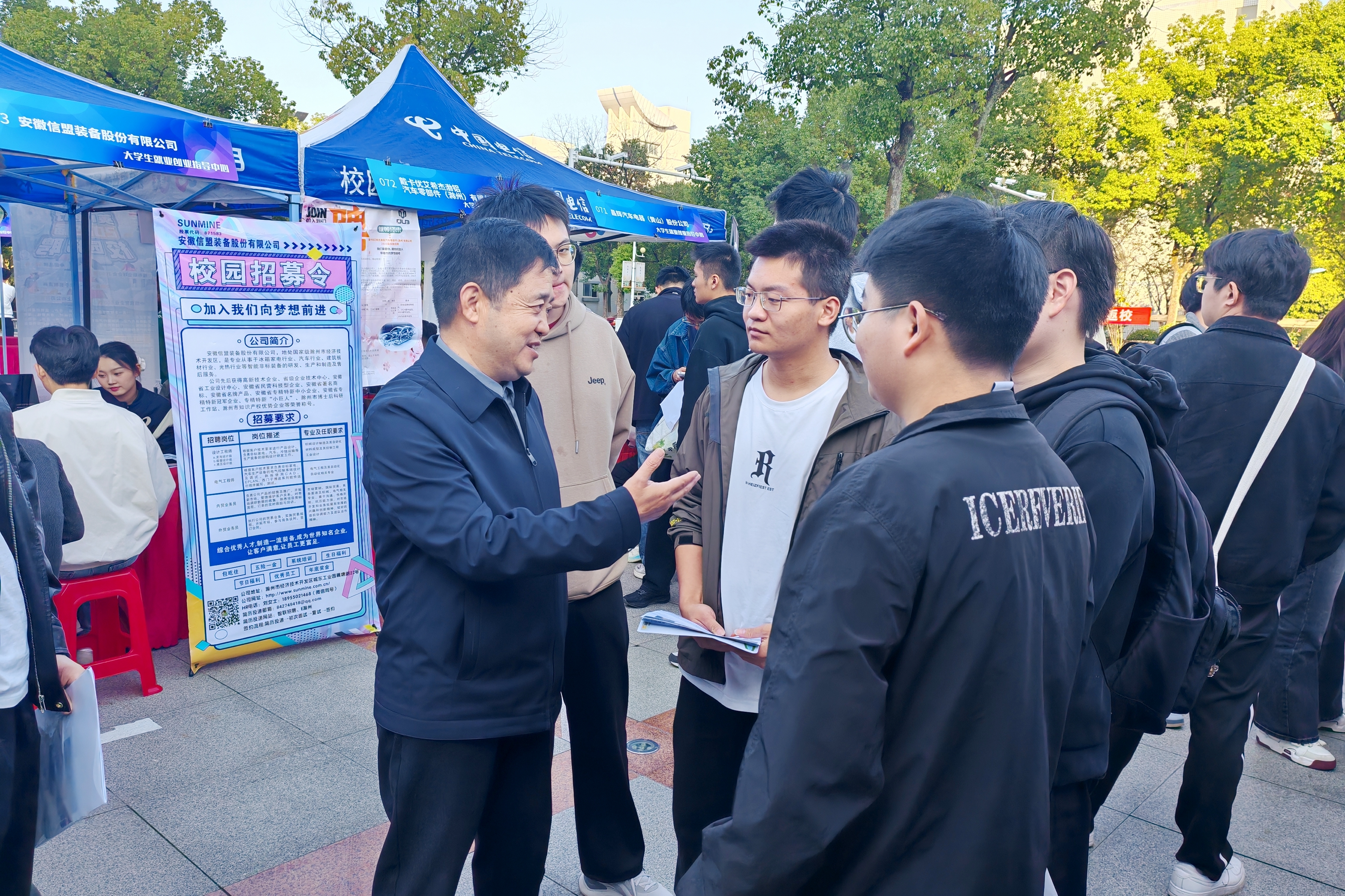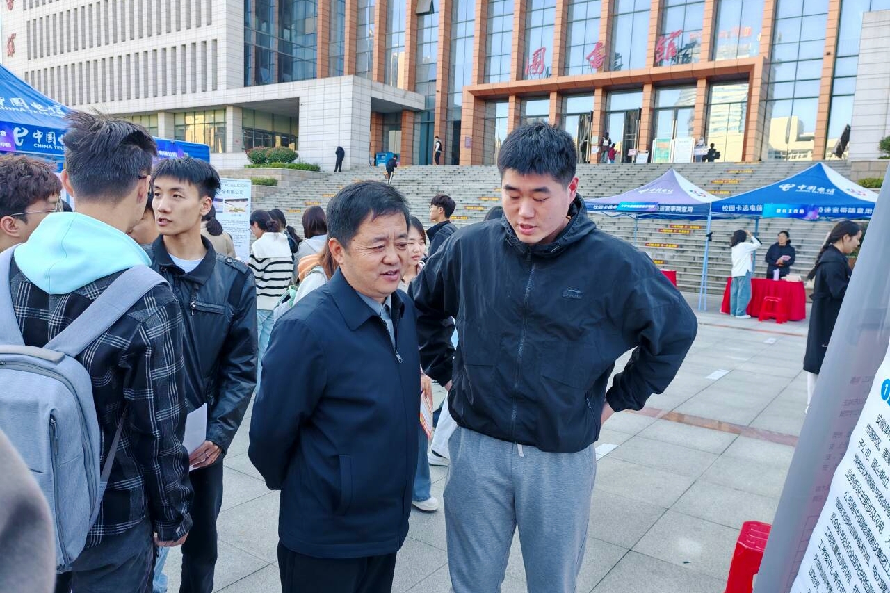 本网讯 11月6日,学校举办第五场2025届毕业生秋季学期大型双选会。校党委常委、副校长张开炳走进招聘会现场调研指导毕业生就业工作,与用人单位代表沟通交流,现场悉心指导2025届毕业生求职就业。