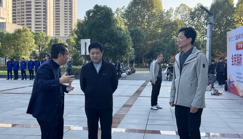 本网讯 11月13日,学校联合芜湖市鸠江区消防大队、城东新区派出所等单位在图书综合楼广场组织开展119消防宣传月活动。校党委常委、副校长张开炳到场指导。