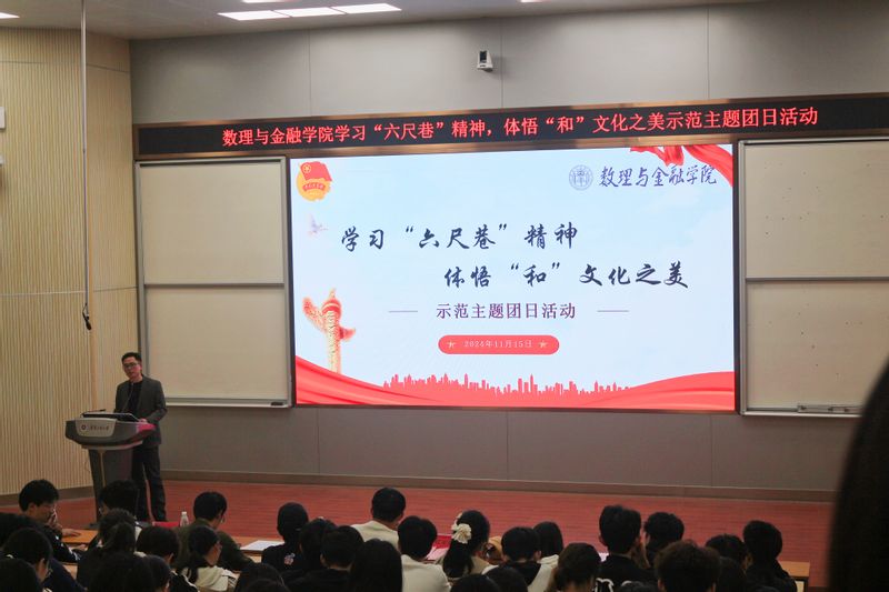 本网讯 为深入学习贯彻党的二十届三中全会精神和习近平总书记考察安徽重要讲话精神,弘扬中华优秀传统美德,营造和谐相处的良好氛围,11月15日,数理与金融学院在2教报告厅开展“学习‘六尺巷’精神,体悟‘和’文化之美”示范主题团日活动。校团委书记李恒奎、学院党委副书记何志恒、学院辅导员及全体宿舍寝室长参加。