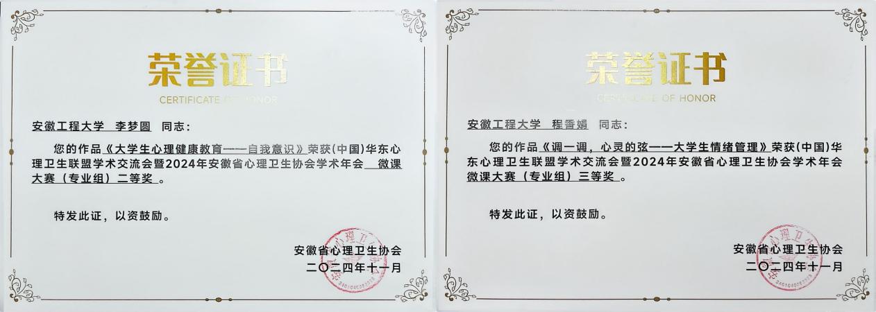 本网讯 为促进心理健康和精神卫生事业健康发展,加大心理健康科普宣传力度,提升心理健康服务质量。11月15日-17日,心理健康教育中心组织教师参加华东心理卫生联盟学术交流会暨2024年安徽省心理卫生协会学术年会,并在与会评选中荣获心理微课大赛奖,本次会议由安徽省心理卫生协会主办。