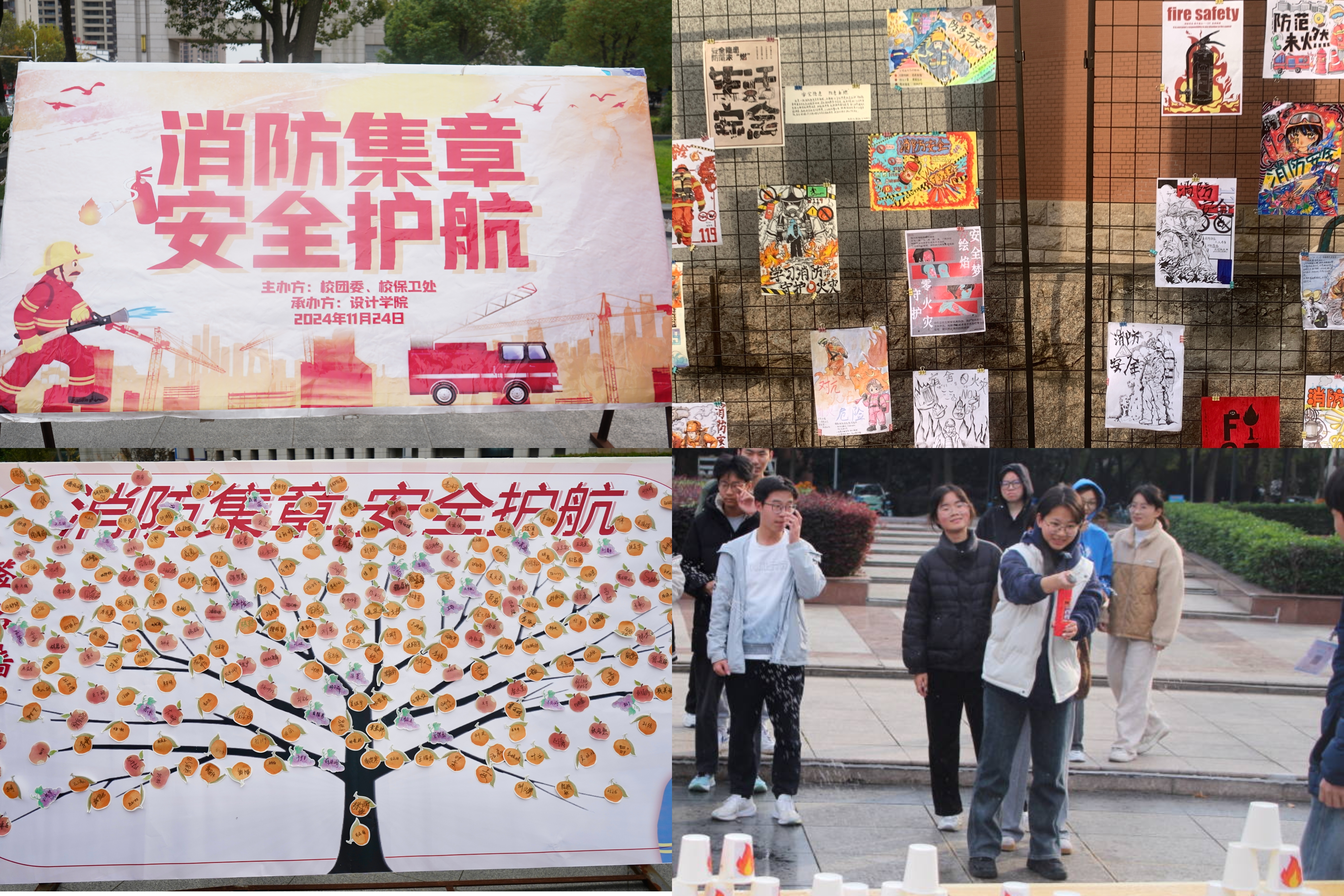 为激发学生的创新思维,在校保卫处和校团委的指导主办下,设计学院先后承办了校消防主题海报设计大赛和校“消防集章,安全护航”消防宣传月校园集章活动。在海报设计大赛中,参赛作品主题鲜明,创意十足,既有严肃的警示之作,也有温馨的提醒之作,充分展现了学生们对消防安全的理解与关注。在消防宣传月校园集章活动中,学院通过精心策划了一系列与消防安全紧密相关的打卡站点,诸如消防知识趣味问答、消防灭火游戏区、消防设施配对挑战、消防竞跑运动、消防隐患找茬环节以及消防安全公约宣誓区。参与者需逐一攻克这些站点中的任务,方能赢取宝贵的奖章。两次活动不仅激发了广大同学的热情参与,更在轻松愉悦的氛围中,让消防安全知识深入人心,使同学们的安全意识得到了显著增强。